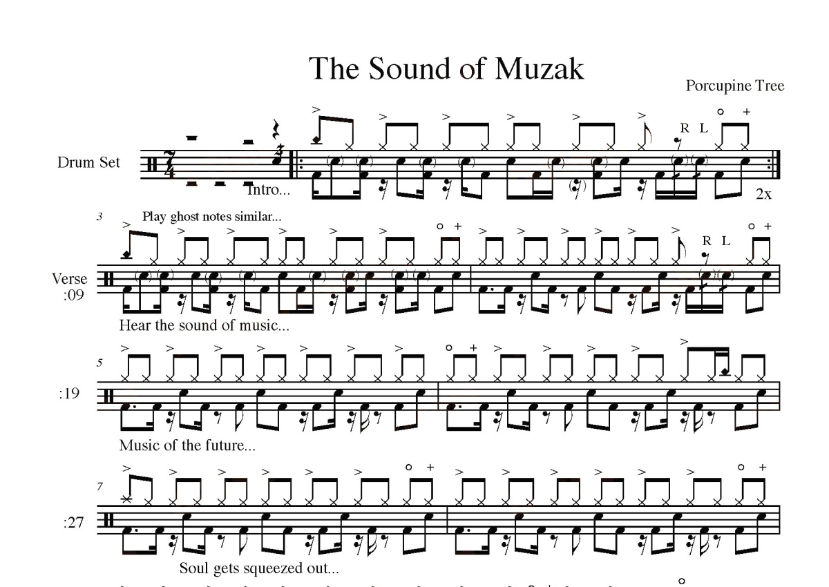 Porcupine《Tree sound of muzak》鼓谱 - 架子鼓谱