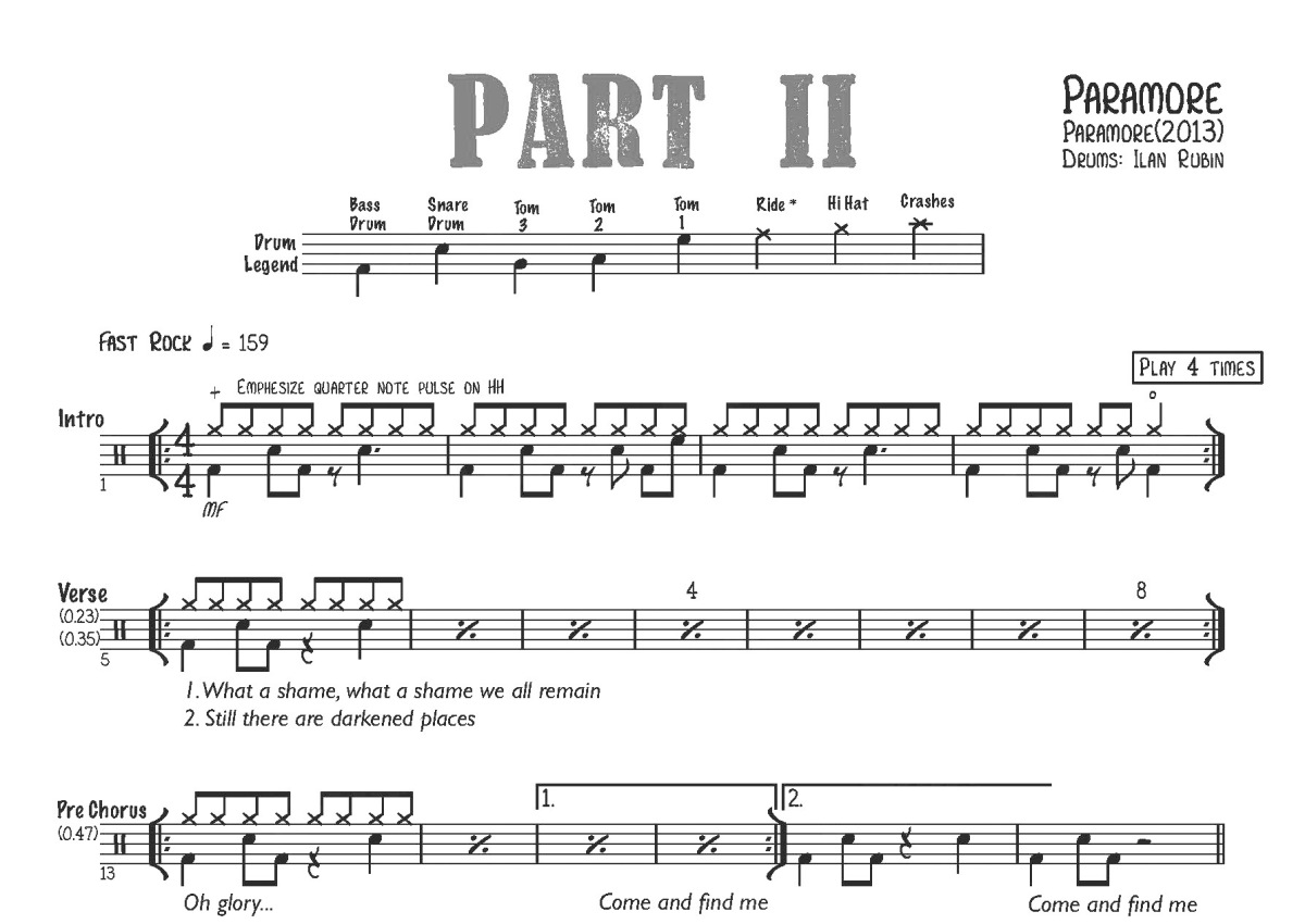 Paramore《Part II》鼓谱 - 架子鼓谱