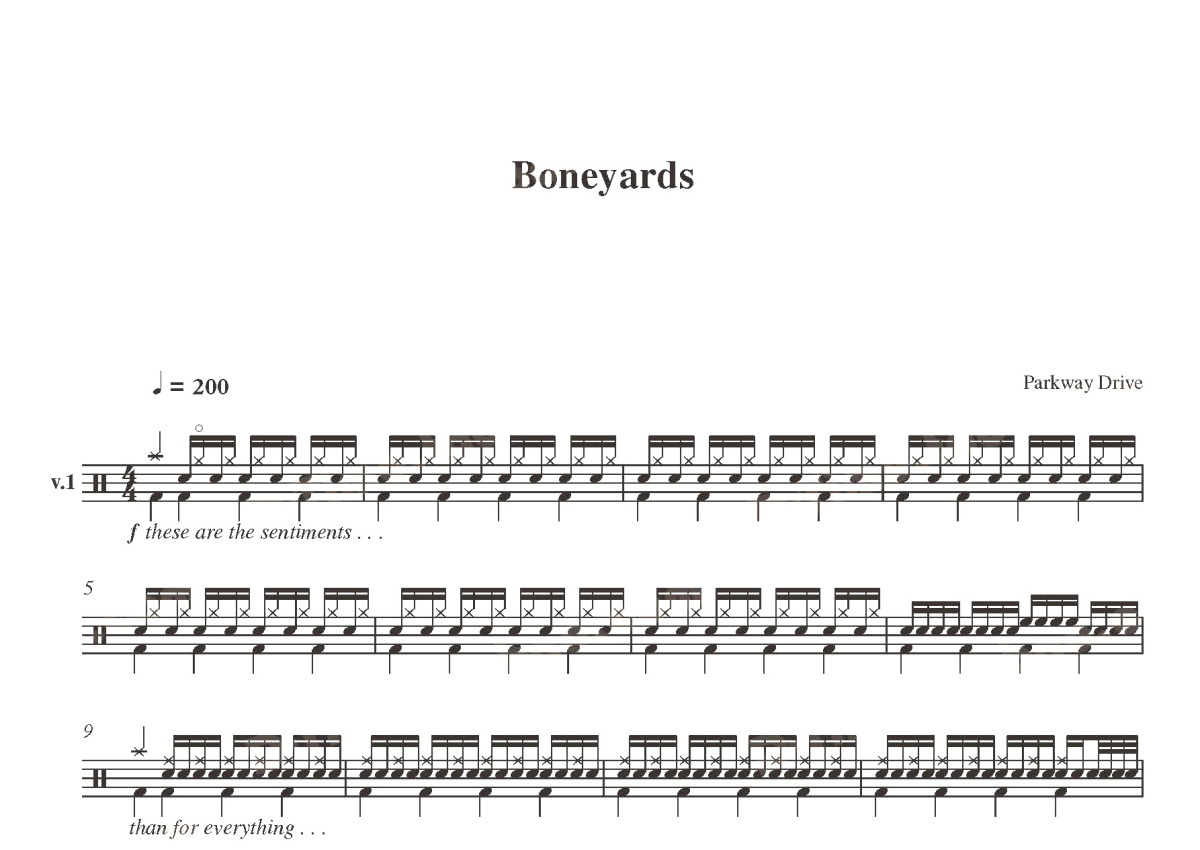 Parkway Drive《Boneyards》鼓谱 - 架子鼓谱