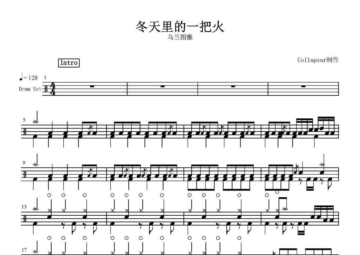 乌兰图雅《冬天里的一把火》鼓谱 - 架子鼓谱