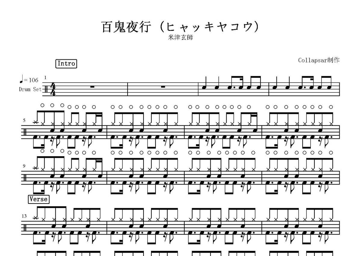 米津玄师《百鬼夜行》鼓谱 - 架子鼓谱