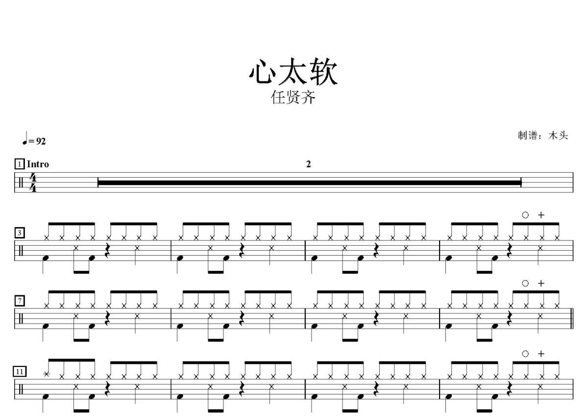 任贤齐《心太软》鼓谱 - 架子鼓谱
