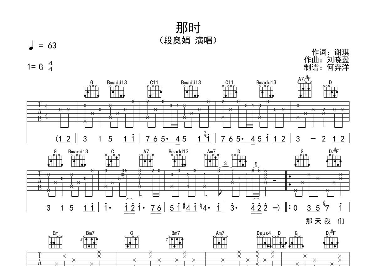 段奥娟《那时》吉他谱 - G调弹唱六线谱