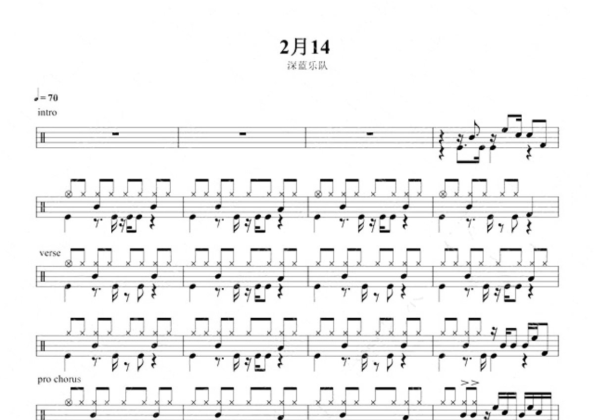 深蓝乐队《二月十四》鼓谱 - 架子鼓谱