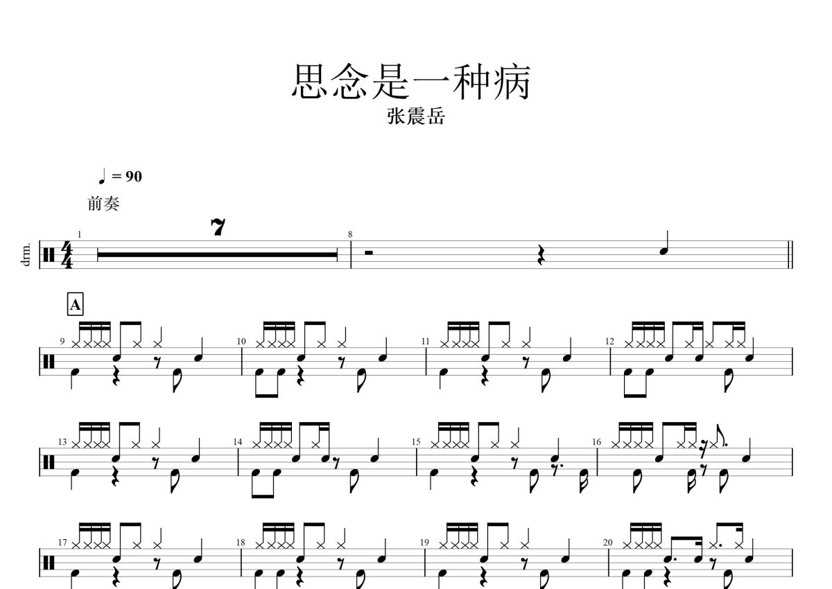张震岳《思念是一种病》鼓谱 - 架子鼓谱