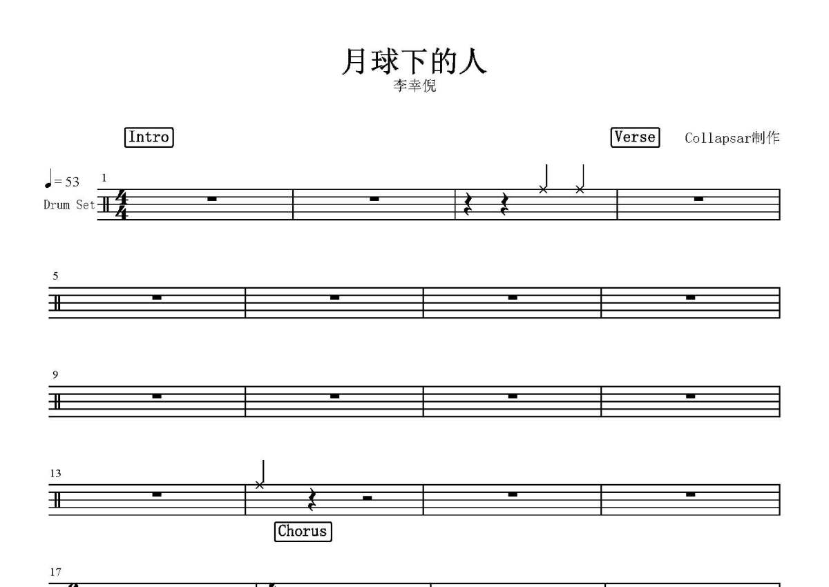 李幸倪《月球下的人》鼓谱 - 架子鼓谱