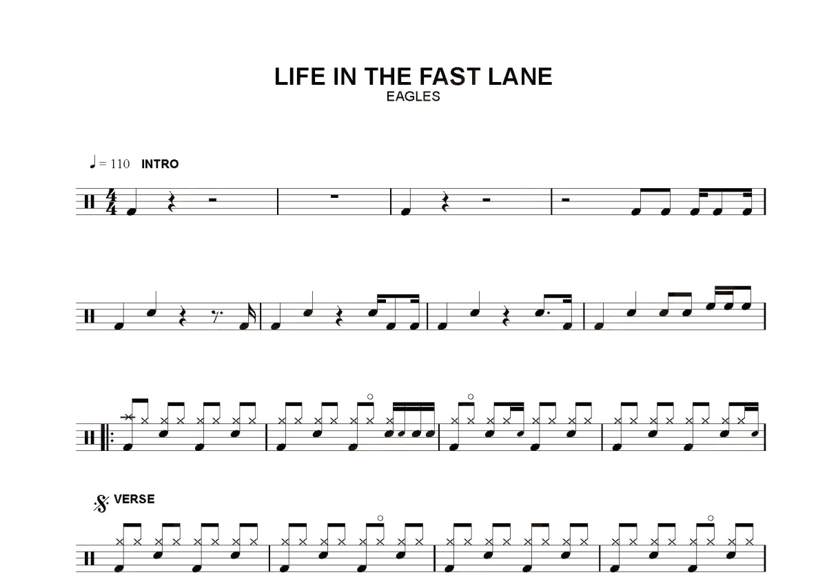 eagles《life in the fast lane》鼓谱 - 架子鼓谱
