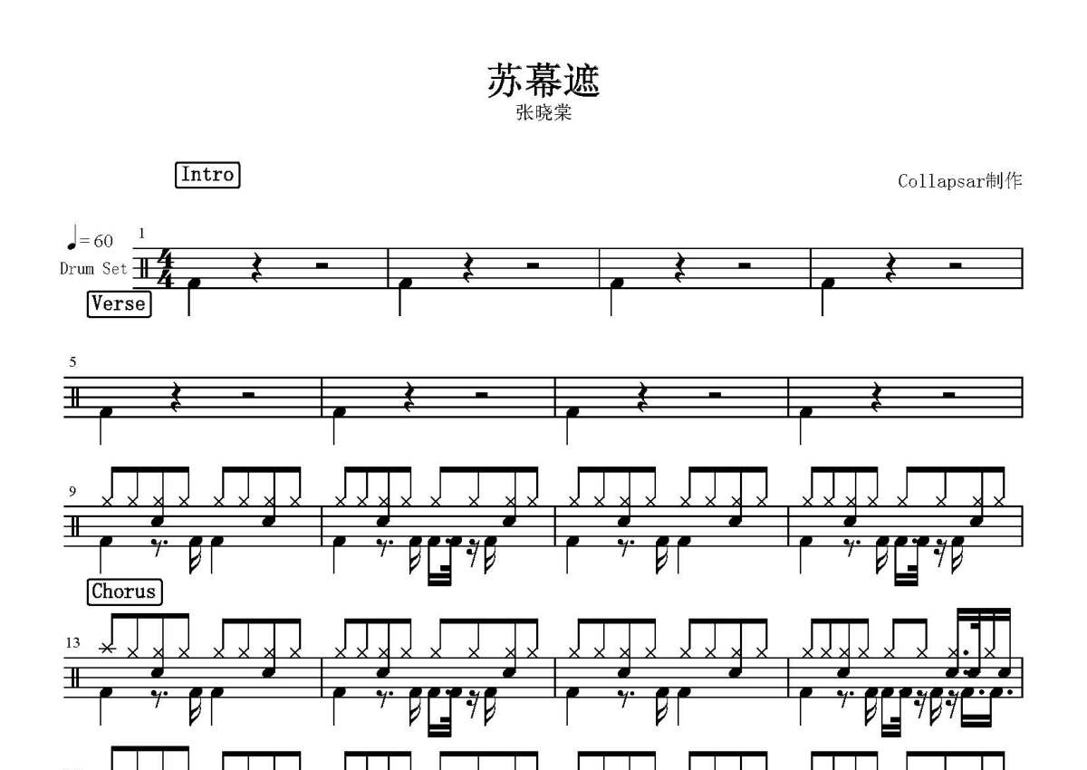 张晓棠《苏幕遮》鼓谱 - 架子鼓谱