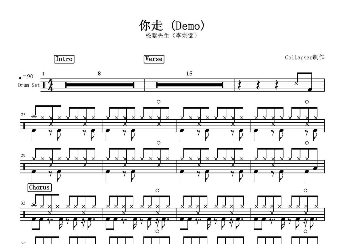 松紧先生(李宗锦)《你走》鼓谱 - 架子鼓谱 - Demo