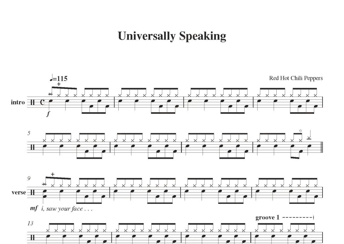 Red Hot Chili Peppers《universally speaking》鼓谱 - 架子鼓谱
