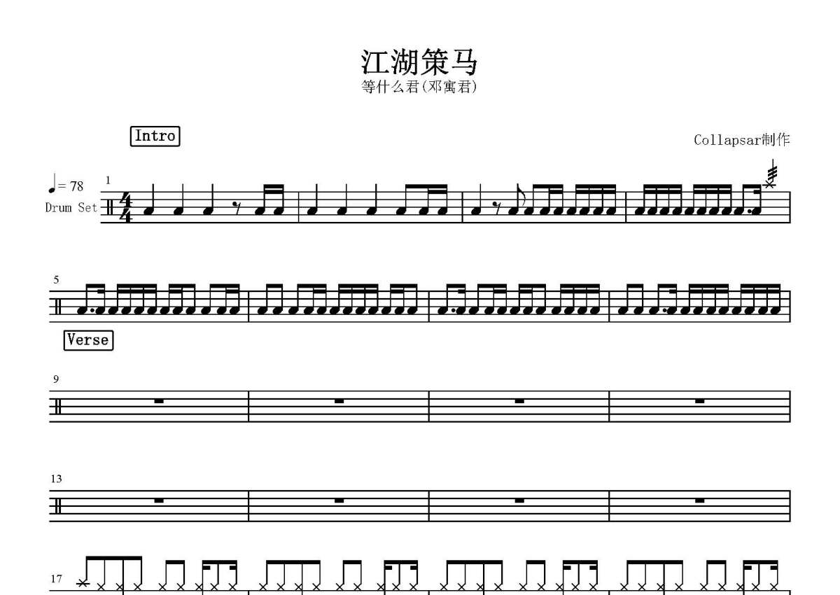 等什么君《江湖策马》鼓谱 - 架子鼓谱