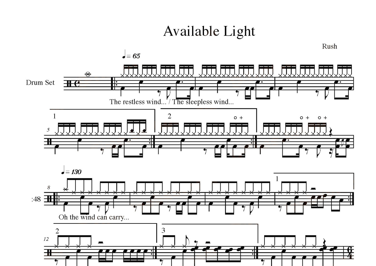rush《available light》鼓谱 - 架子鼓谱