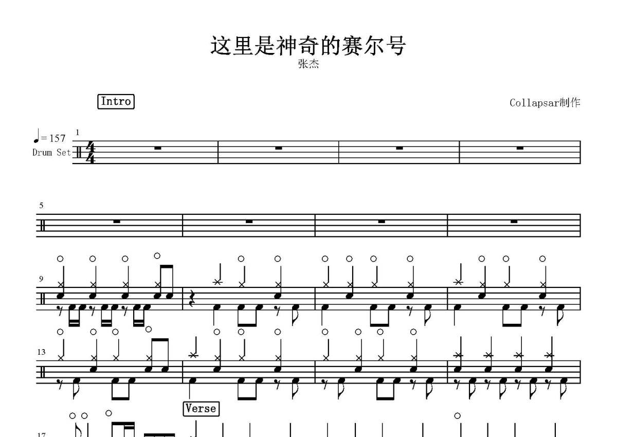 《这里是神奇的赛尔号》是张杰演唱的一首歌曲,这份鼓谱共有四张高清图谱,图谱由 @打鼓谱 编配上传,图谱使用五线谱编配,使用这份这里是神奇的赛尔号架子鼓谱,你将能够轻松地敲打出这首张杰的这里是神奇的赛尔号,快来尝试吧。《这里是神奇的赛尔号》是张杰演唱歌曲,由甘世佳填词,唐磊作曲,王冲、薛林编曲,同时也为2011年上映的动画电影《赛尔号之寻找凤凰神兽》主题曲。