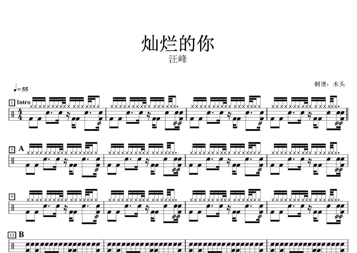 汪峰《灿烂的你》鼓谱 - 架子鼓谱