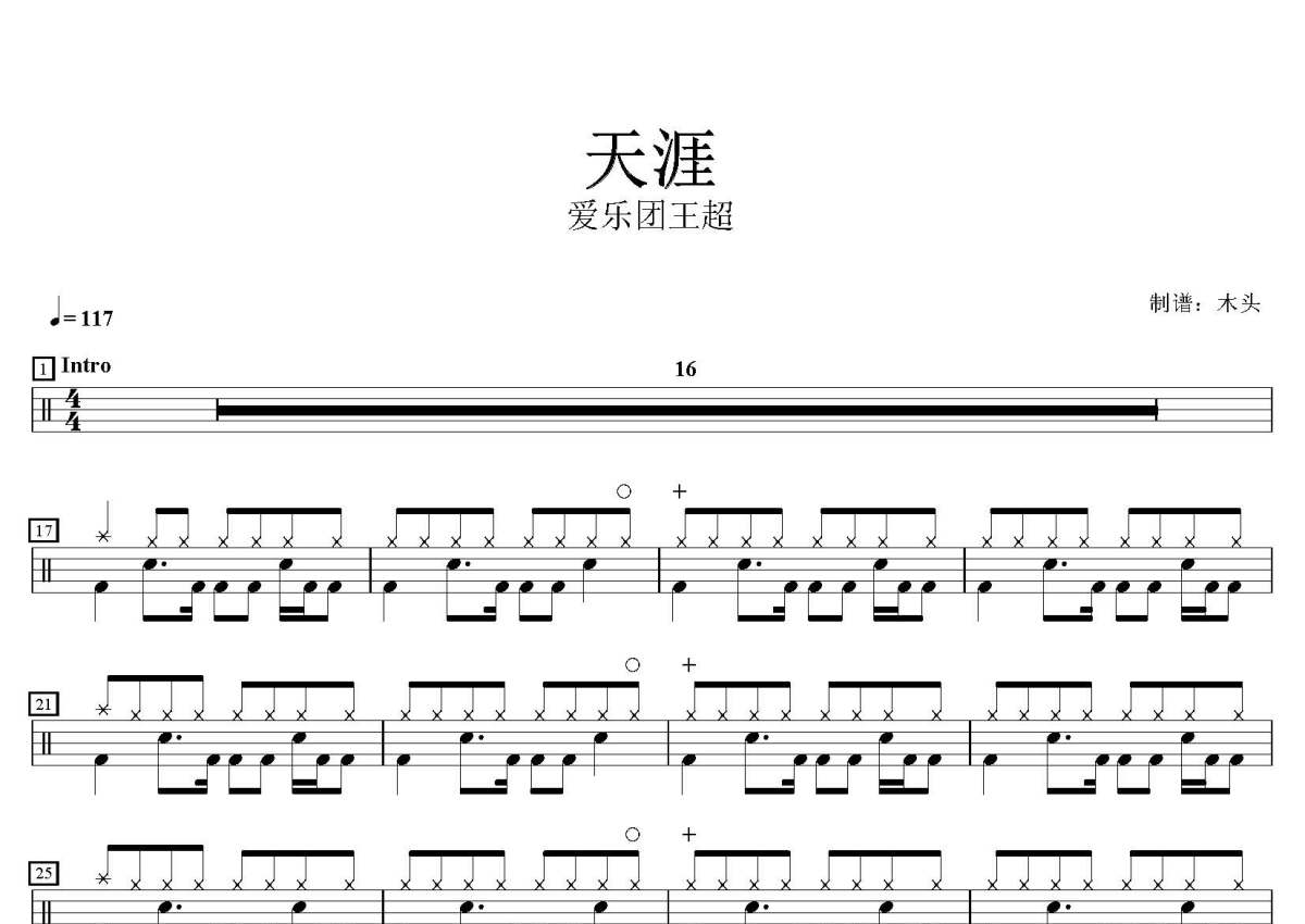 爱乐团王超《天涯》鼓谱 - 架子鼓谱