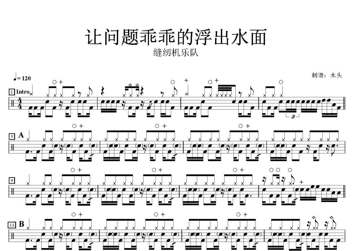 缝纫机乐队《让问题乖乖的浮出水面》鼓谱 - 架子鼓谱