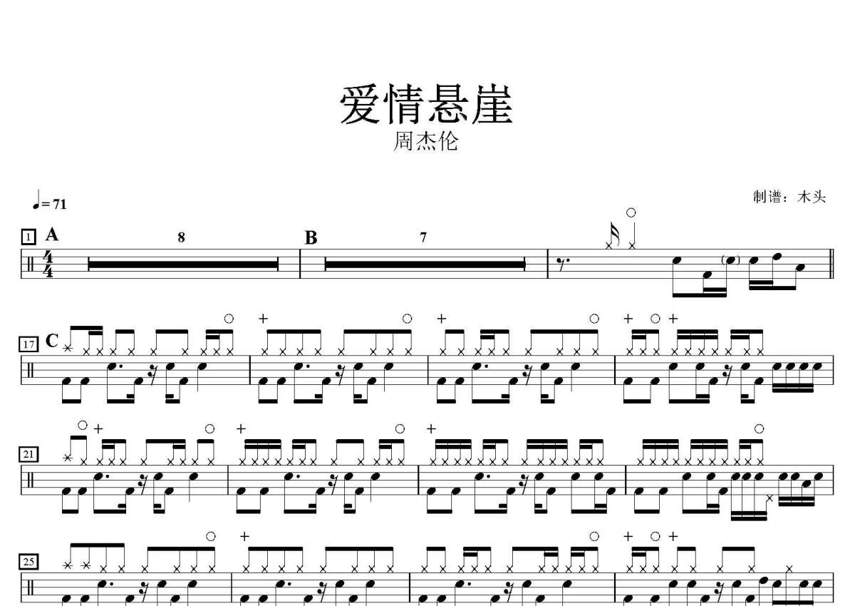 周杰伦《爱情悬崖》鼓谱 - 架子鼓谱