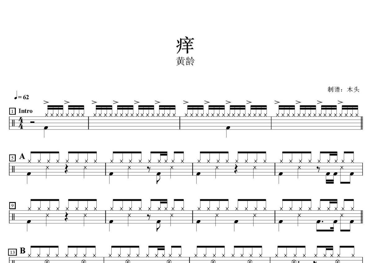 黄龄《痒》鼓谱 - 架子鼓谱