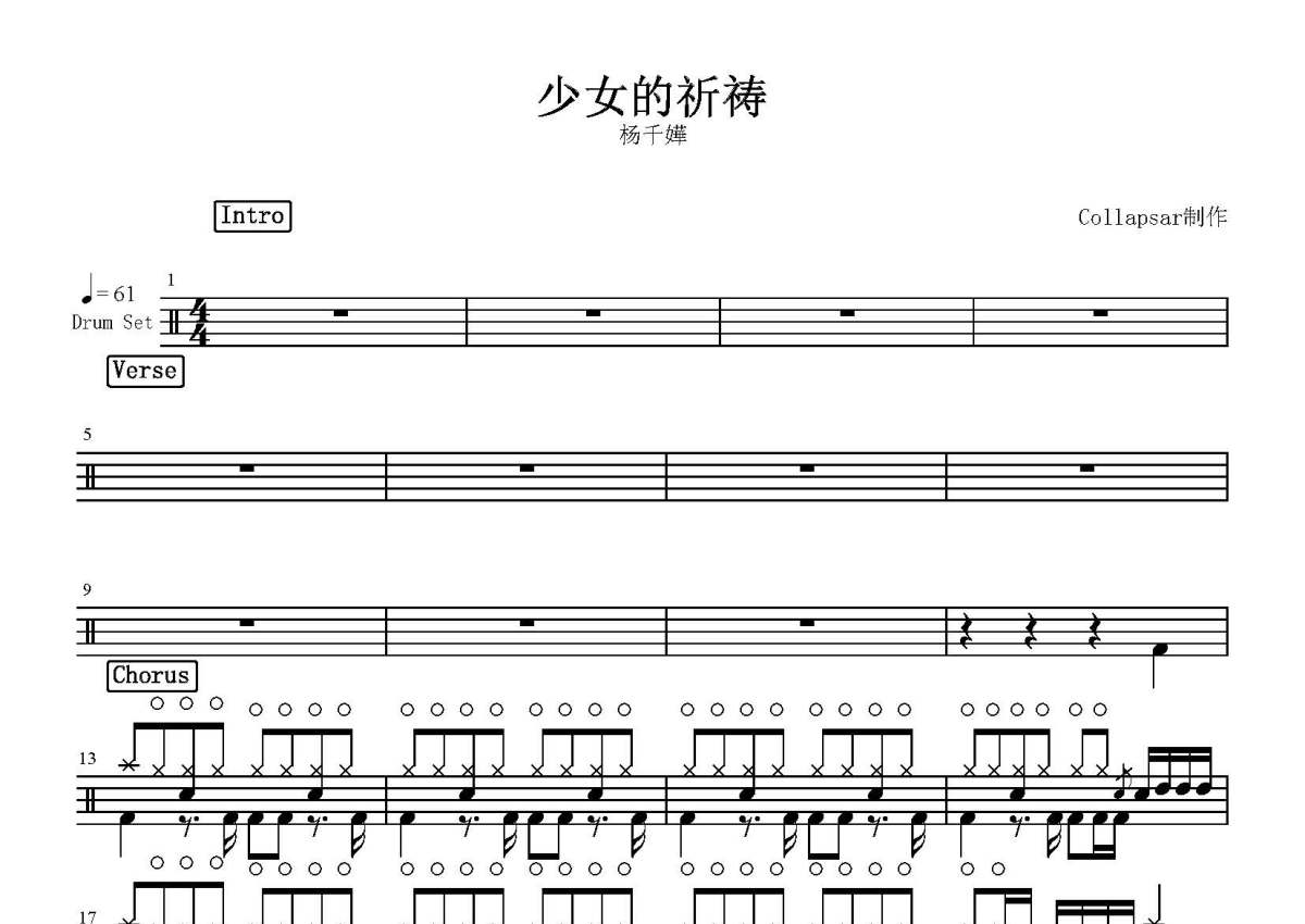 杨千嬅《少女的祈祷》鼓谱 - 架子鼓谱