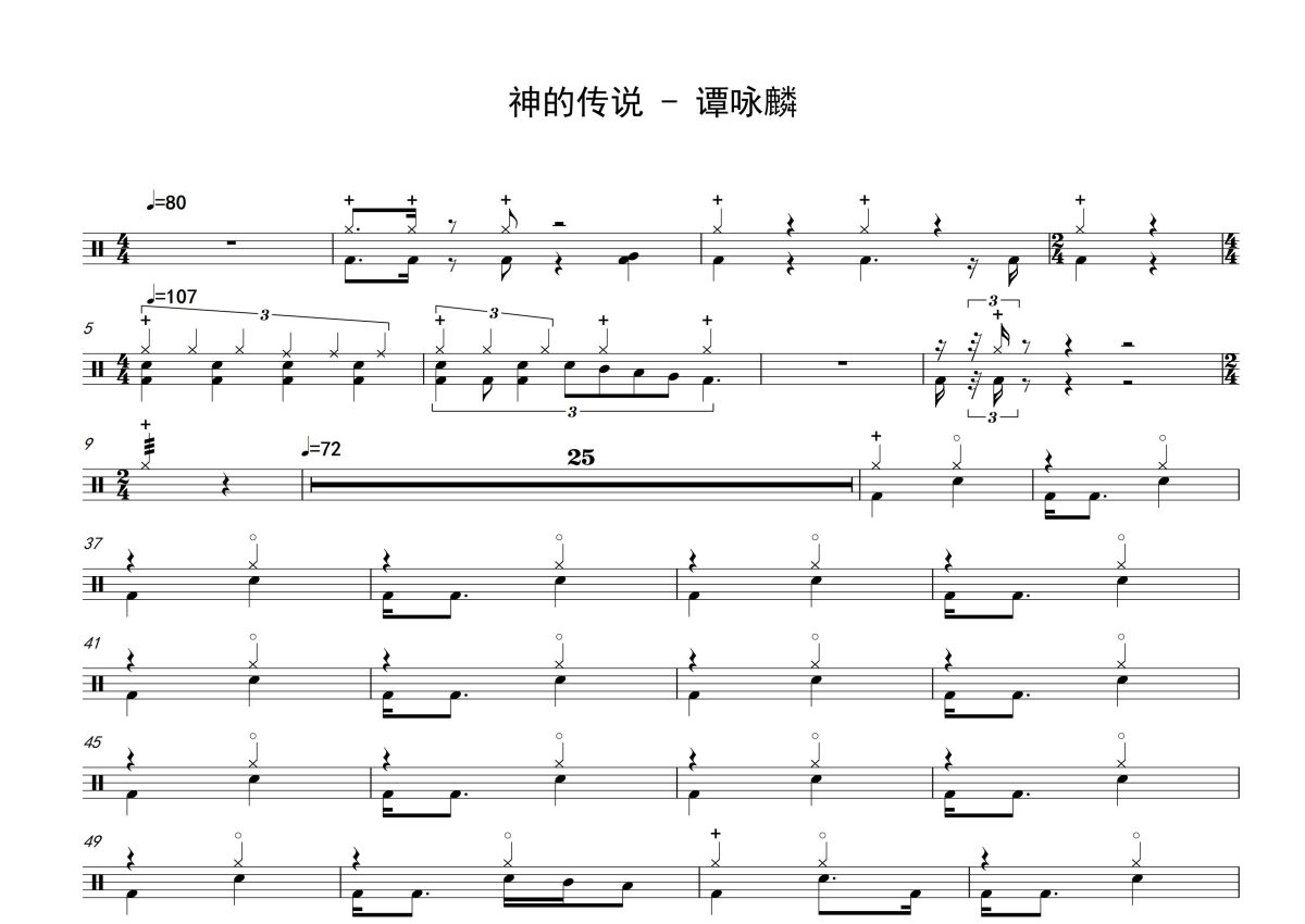 谭咏麟《神的传说》鼓谱 - 架子鼓谱