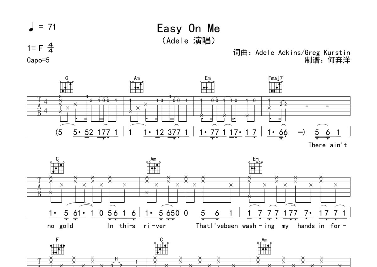 Adele《Easy On Me》吉他谱 - C调弹唱六线谱