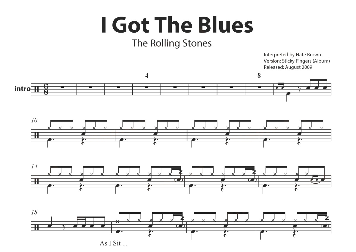 《I Got The Blues》是Rolling Stones演唱的一首歌曲,这份鼓谱共有三张高清图谱,图谱由 @打鼓谱 编配上传,图谱使用五线谱编配,使用这份I Got The Blues架子鼓谱,你将能够轻松地敲打出这首Rolling Stones的I Got The Blues,快来尝试吧。《I Got The Blues》现场版。滚石乐队(The Rolling Stones)是一支来自英国的摇滚乐队,成立于1962年,自成立以来一直延续着传统蓝调摇滚的路线。截至2014年,乐队的四位成员分别是米克·贾格尔、查理·沃茨、朗尼·伍德和基思·理查兹。