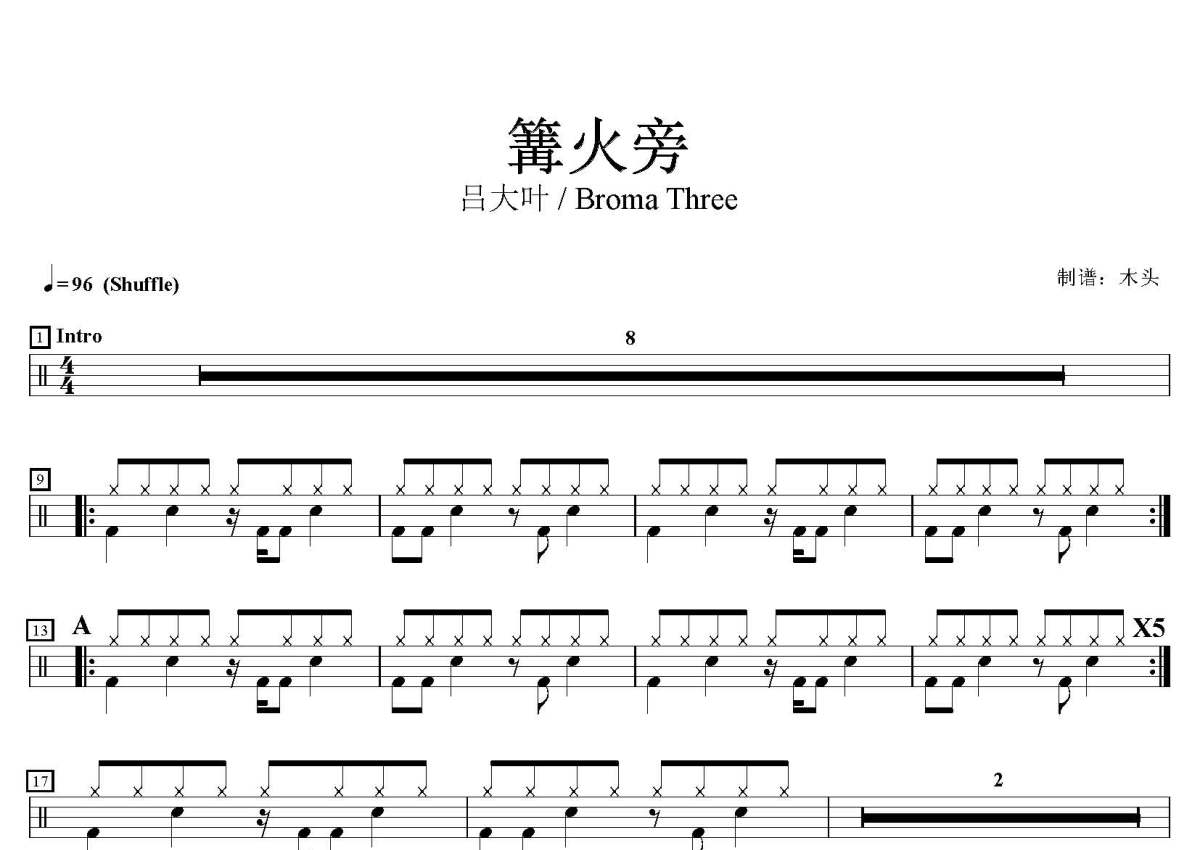 吕大叶 / Broma Three《篝火旁》鼓谱 - 架子鼓谱