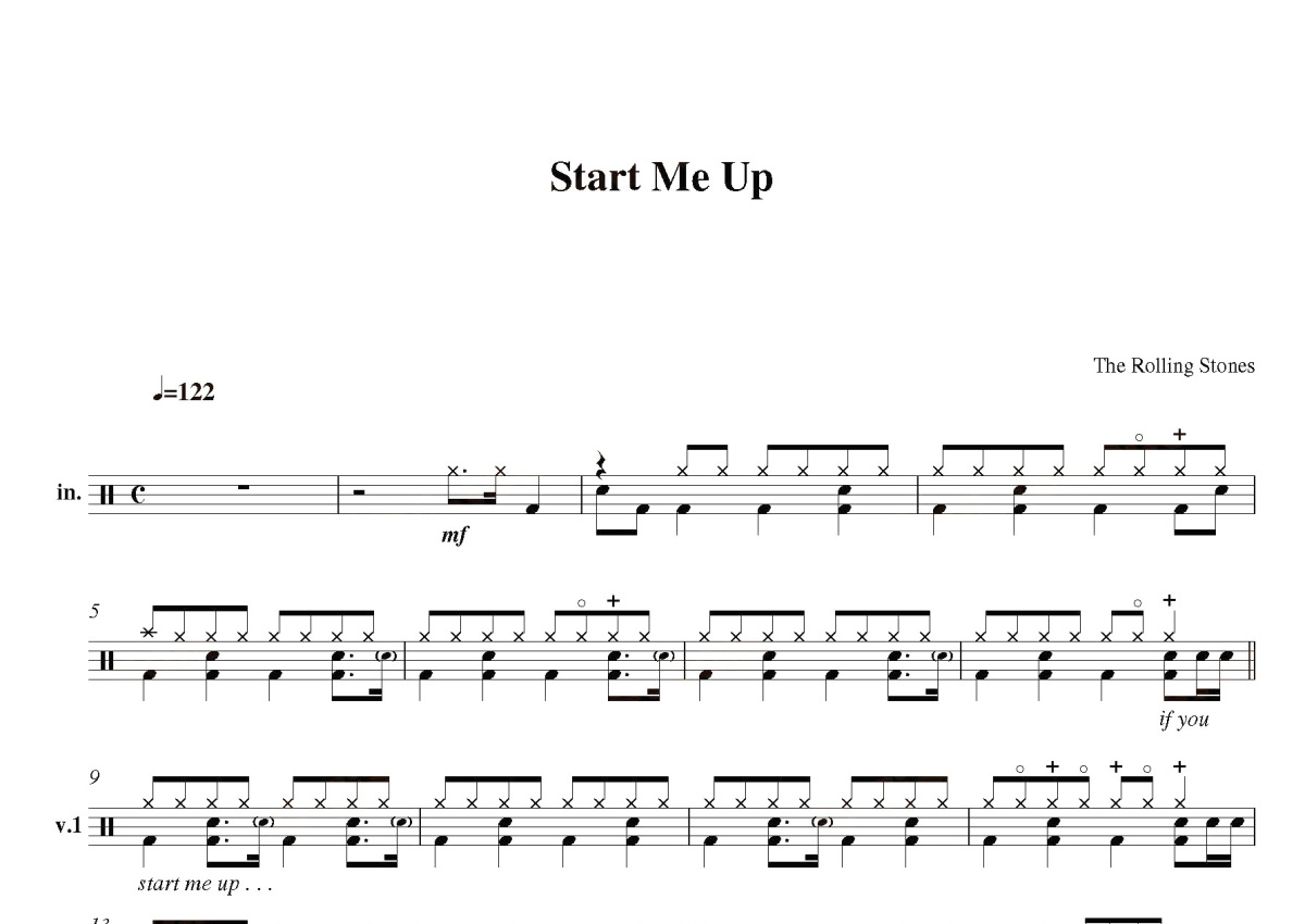 《Start Me Up》是Rolling Stones演唱的一首歌曲,这份鼓谱共有三张高清图谱,图谱由 @打鼓谱 编配上传,图谱使用五线谱编配,使用这份Start Me Up架子鼓谱,你将能够轻松地敲打出这首Rolling Stones的Start Me Up,快来尝试吧。《Start Me Up》此曲为英国著名摇滚乐队滚石乐队创作歌曲。1995年8月24日微软发布Windows 95操作系统,为庆祝微软找来滚石乐队演唱了《Start Me Up》,以此强调这款新操作系统中具有革命性的“开始(Start)”按钮。滚石乐队(The Rolling Stones)是一支来自英国的摇滚乐队,成立于1962年,自成立以来一直延续着传统蓝调摇滚的路线。 截至2014年,乐队的四位成员分别是米克·贾格尔、查理·沃茨、朗尼·伍德和基思·理查兹。