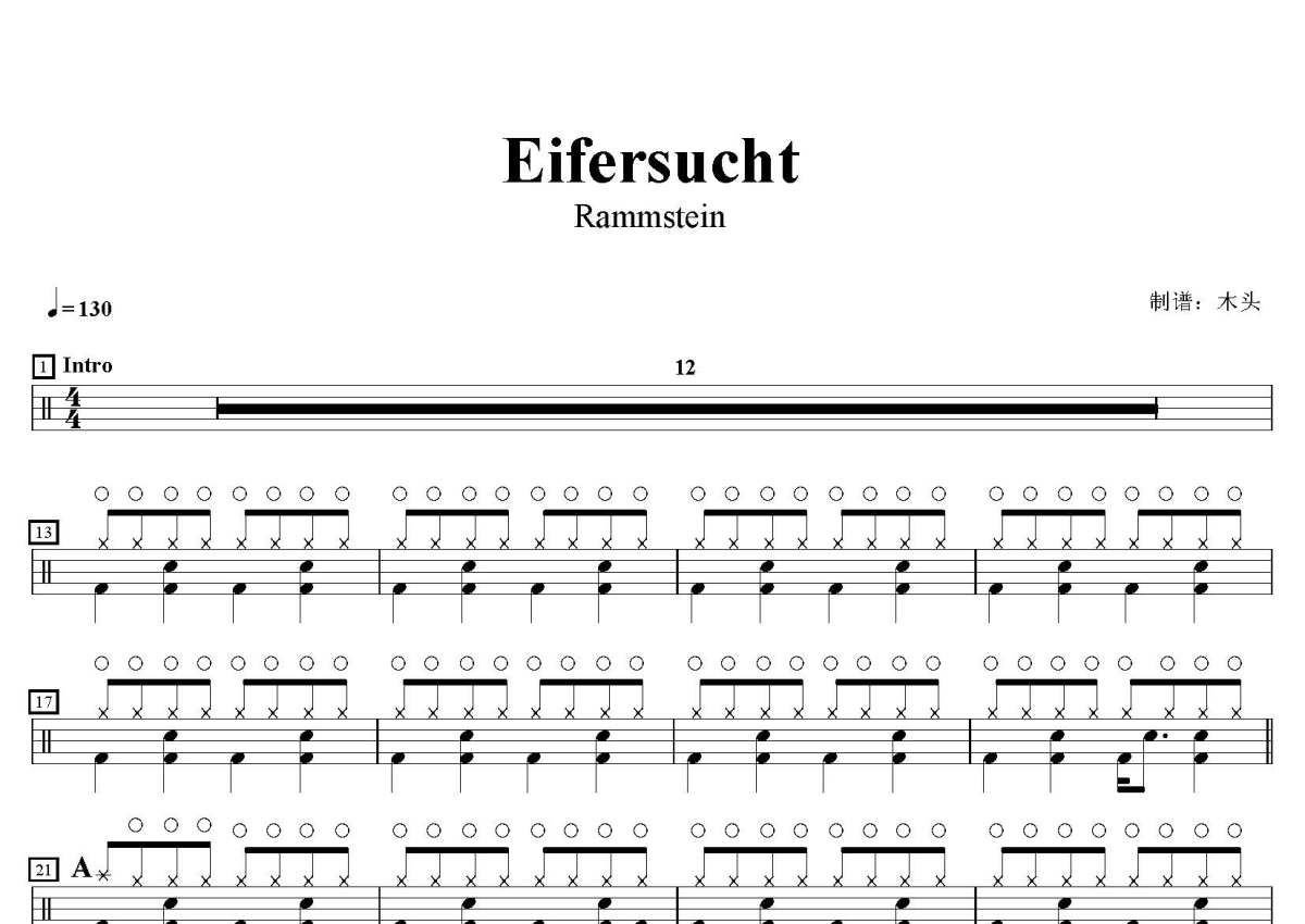 Rammstein《Eifersucht》鼓谱 - 架子鼓谱