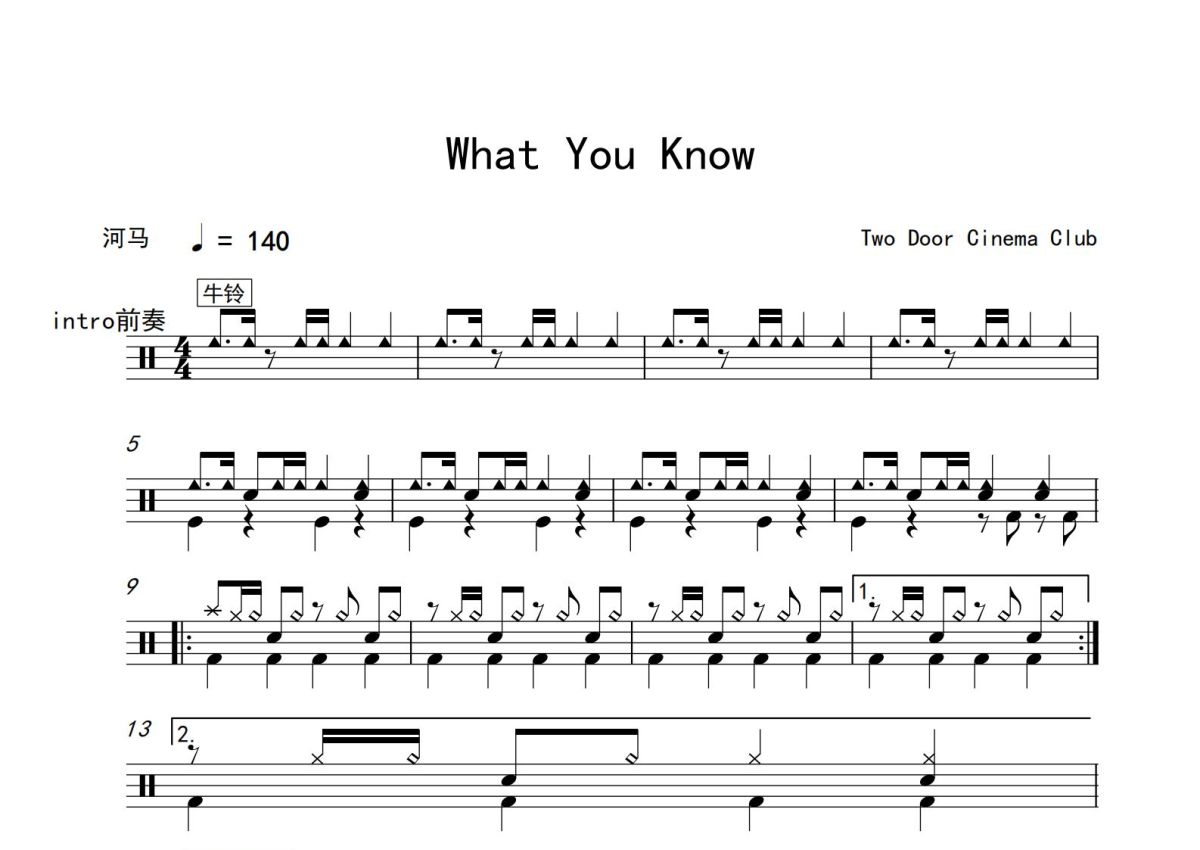 Two Door Cinema Club《What You Know》鼓谱 - 架子鼓谱