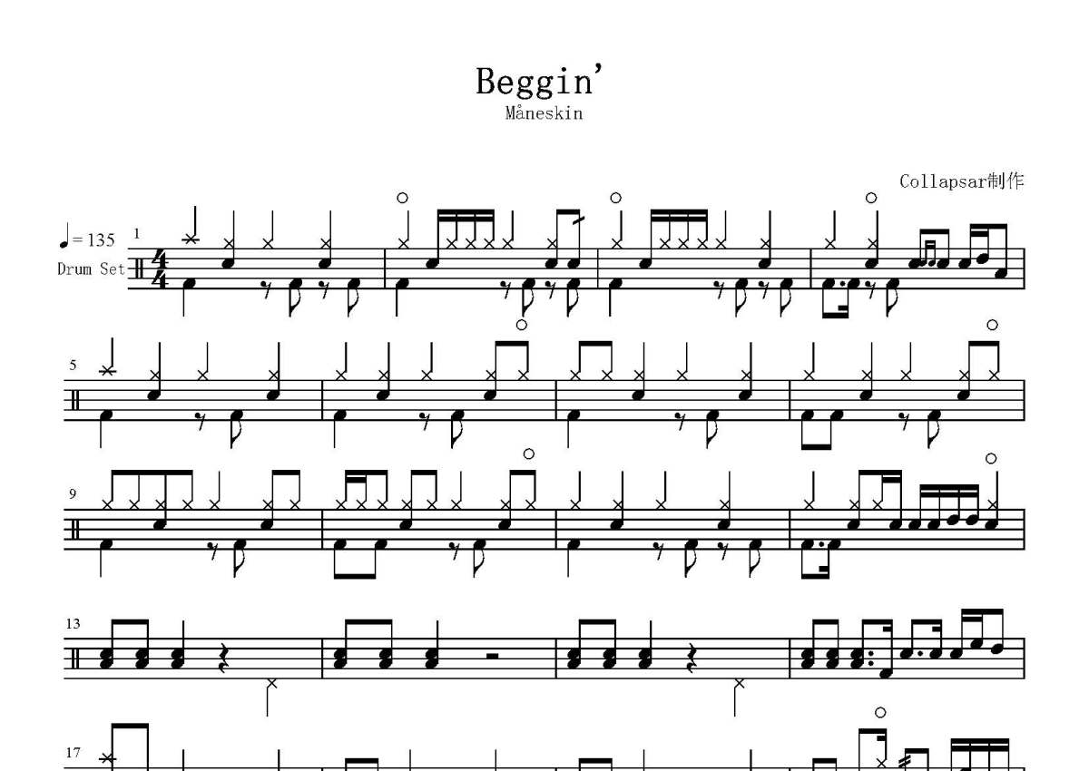 Måneskin《Beggin'》鼓谱 - 架子鼓谱
