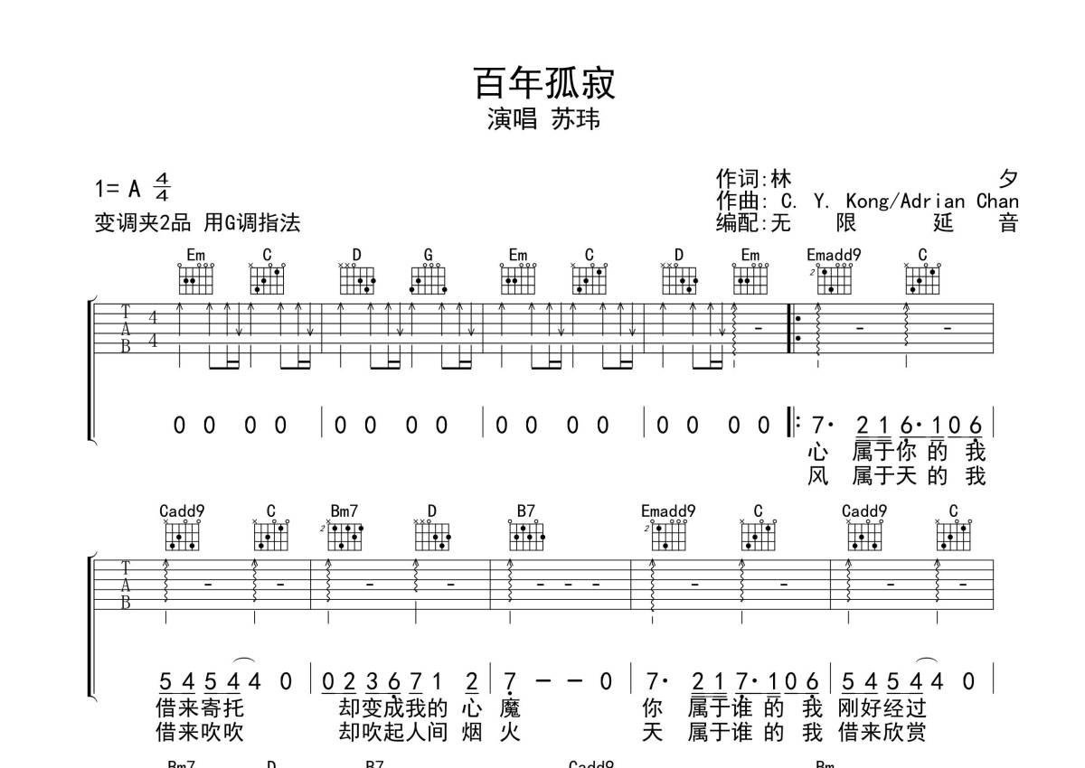 苏玮《百年孤寂》吉他谱 - G调弹唱六线谱