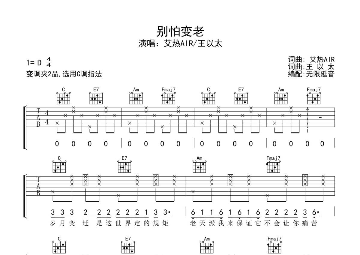王以太/艾热AIR《别怕变老》吉他谱 - C调弹唱六线谱