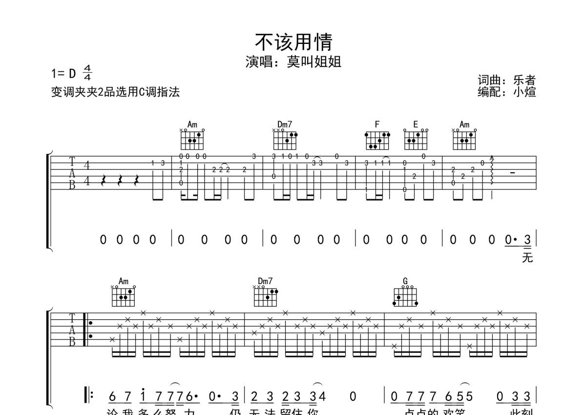 莫叫姐姐《不该用情》吉他谱 - C调弹唱六线谱