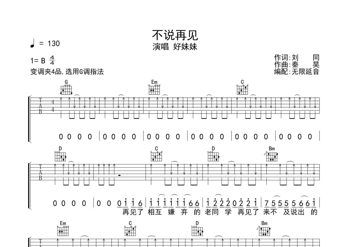 好妹妹乐队《不说再见》吉他谱 - G调弹唱六线谱