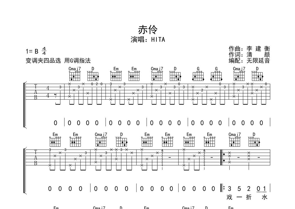 HIta《赤伶》吉他谱 - G调弹唱六线谱