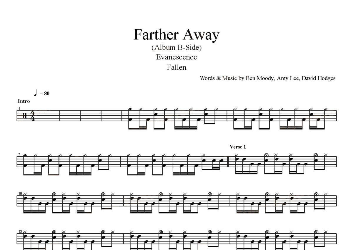 Evanescence《Farther Away》鼓谱 - 架子鼓谱