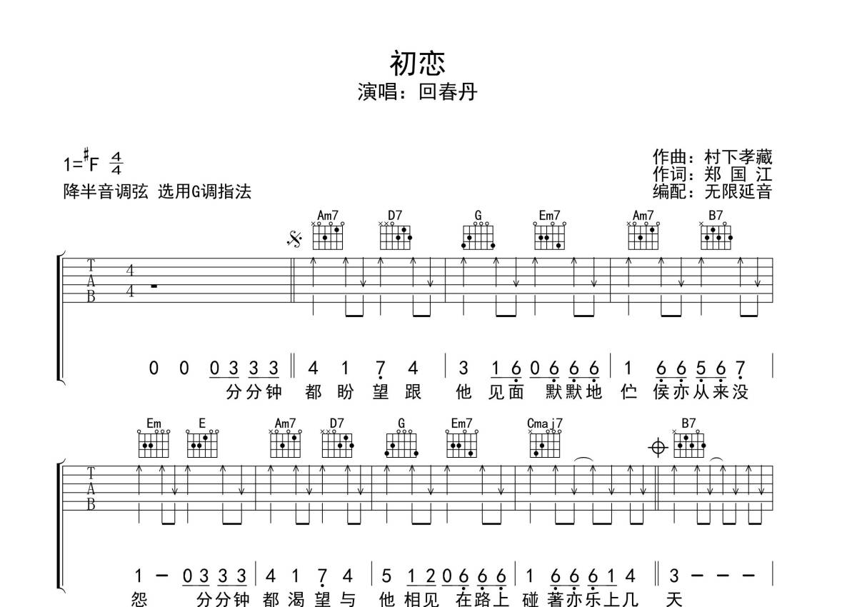 回春丹《初恋》吉他谱 - G调弹唱六线谱