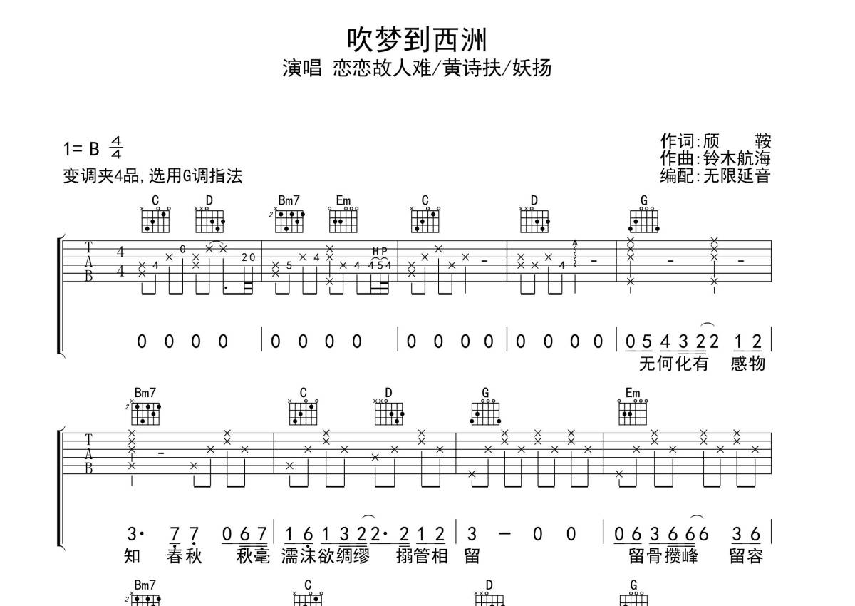 黄诗扶/妖扬《吹梦到西洲》吉他谱 - G调弹唱六线谱