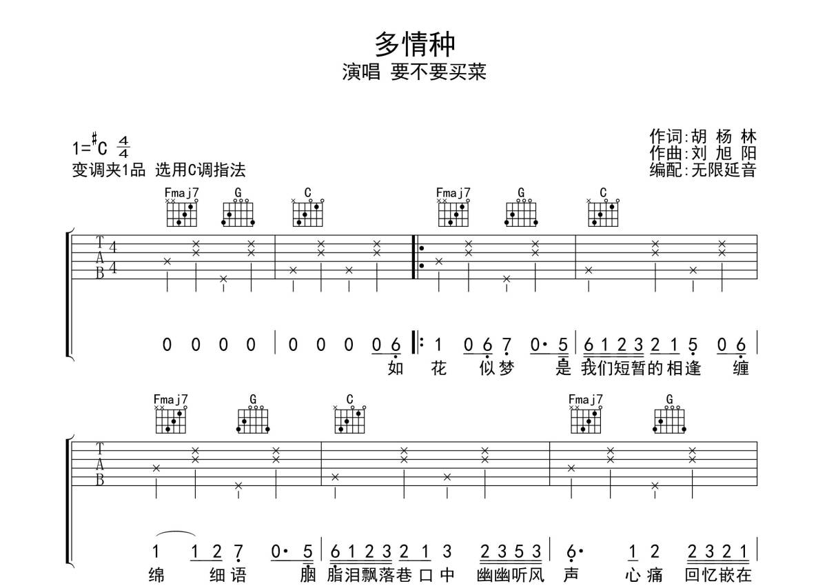 要不要买菜《多情种》吉他谱 - C调弹唱六线谱