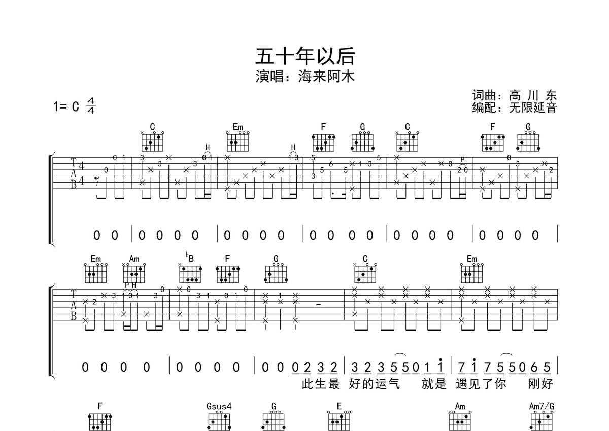 海来阿木《五十年以后》吉他谱 - C调弹唱六线谱