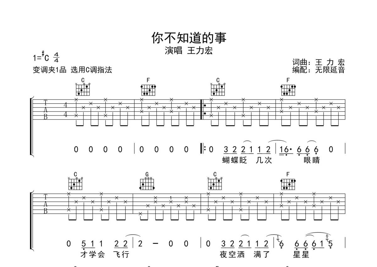 王力宏《你不知道的事》吉他谱 - C调弹唱六线谱