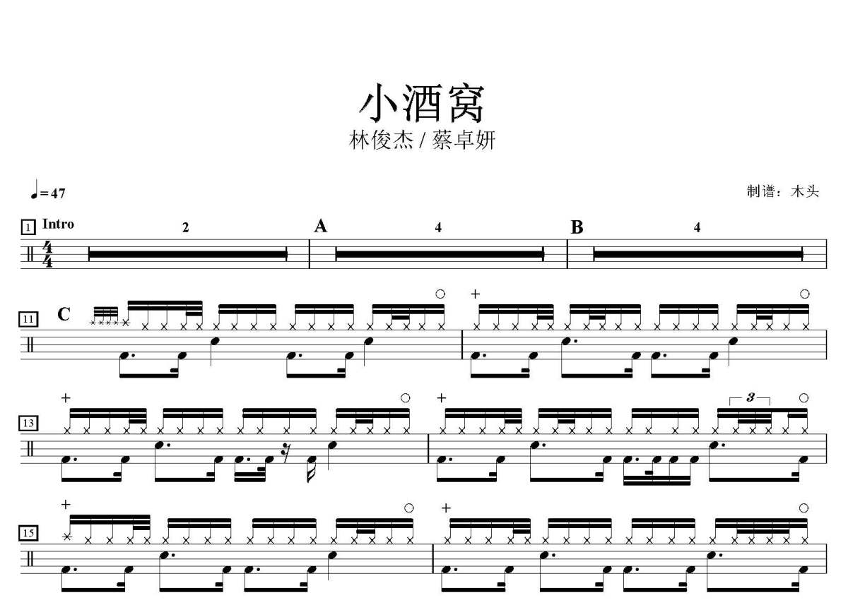 林俊杰 / 蔡卓妍《小酒窝》鼓谱 - 架子鼓谱