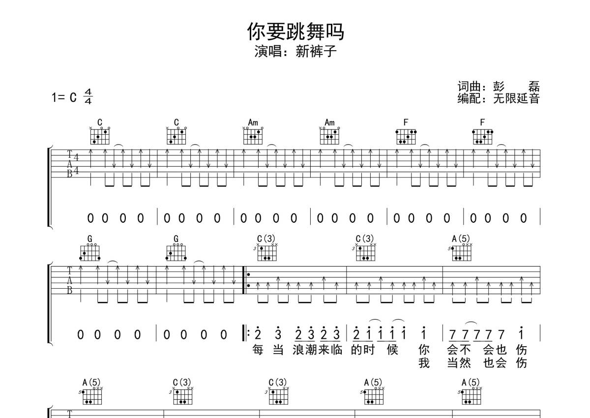 新裤子乐队《你要跳舞吗》吉他谱 - C调弹唱六线谱