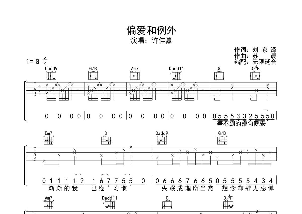 许佳豪《偏爱和例外》吉他谱 - G调弹唱六线谱