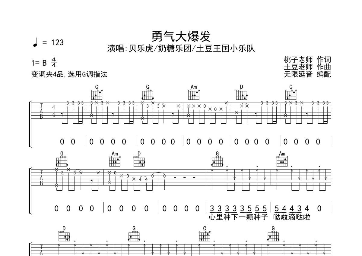 贝乐虎/奶糖乐团/土豆王国小乐队《勇气大爆发》吉他谱 - G调弹唱六线谱