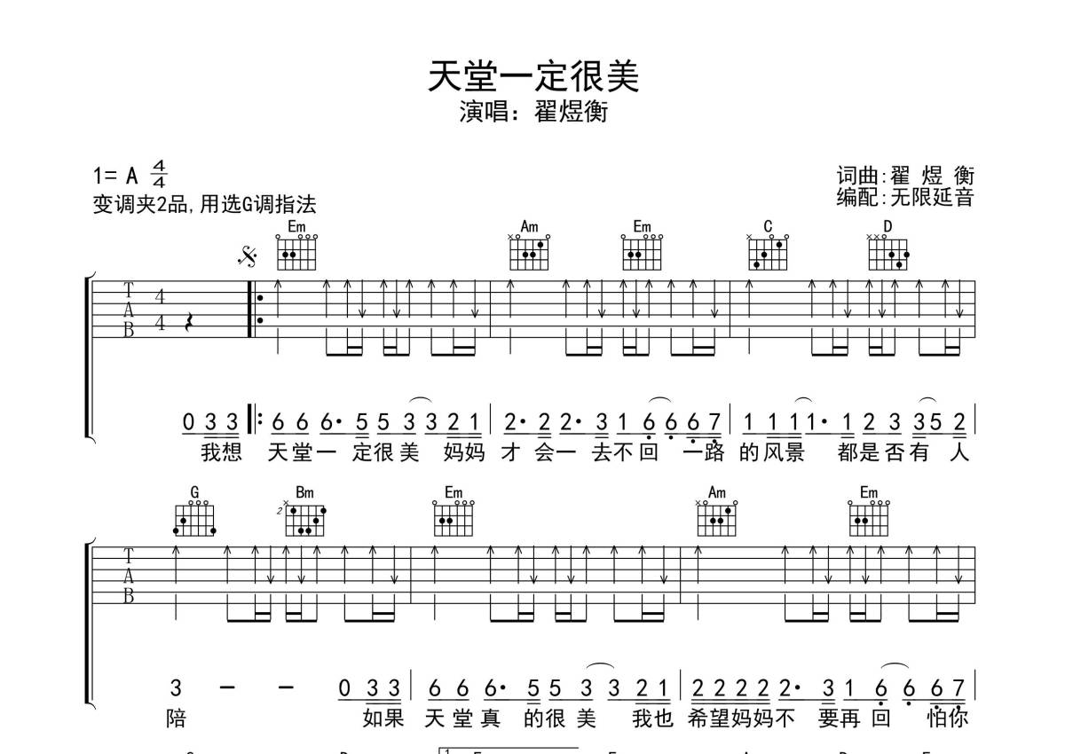 翟煜衡《天堂一定很美》吉他谱 - G调弹唱六线谱