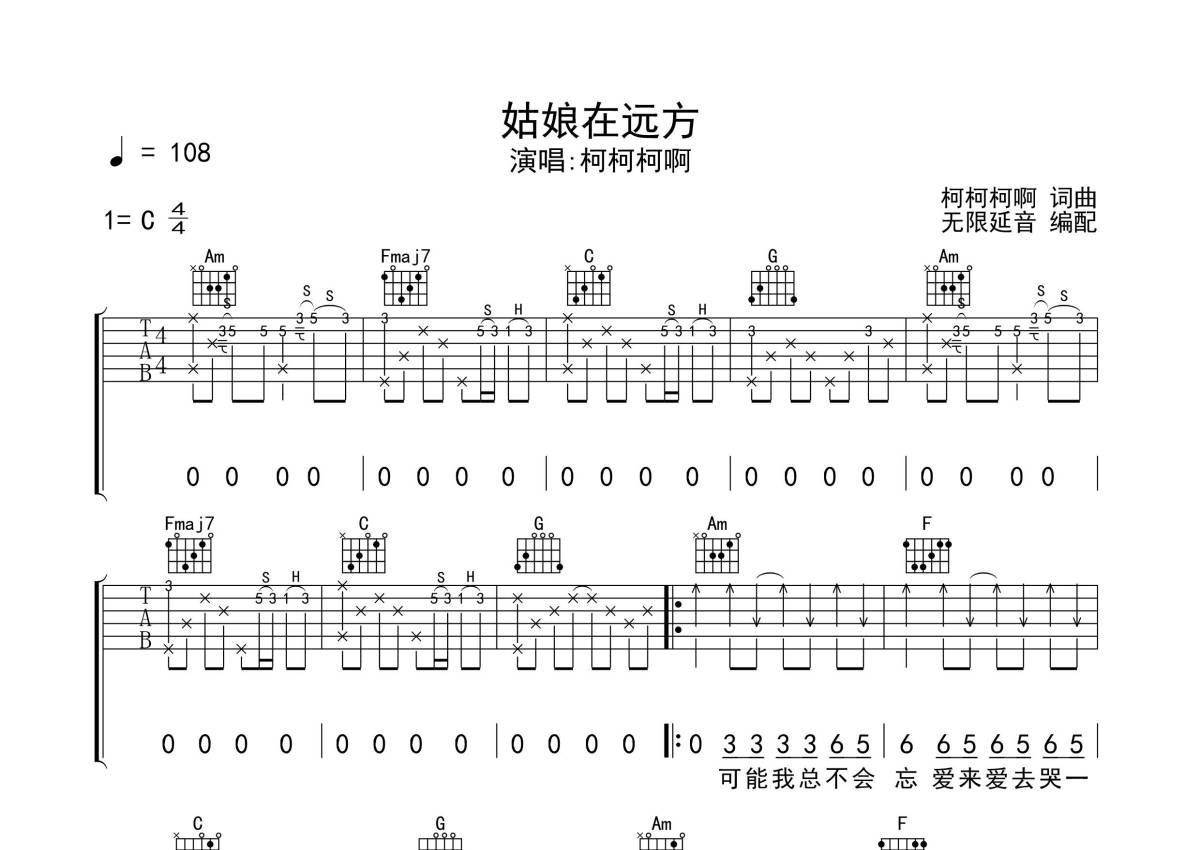 柯柯柯啊《姑娘在远方》吉他谱 - C调弹唱六线谱