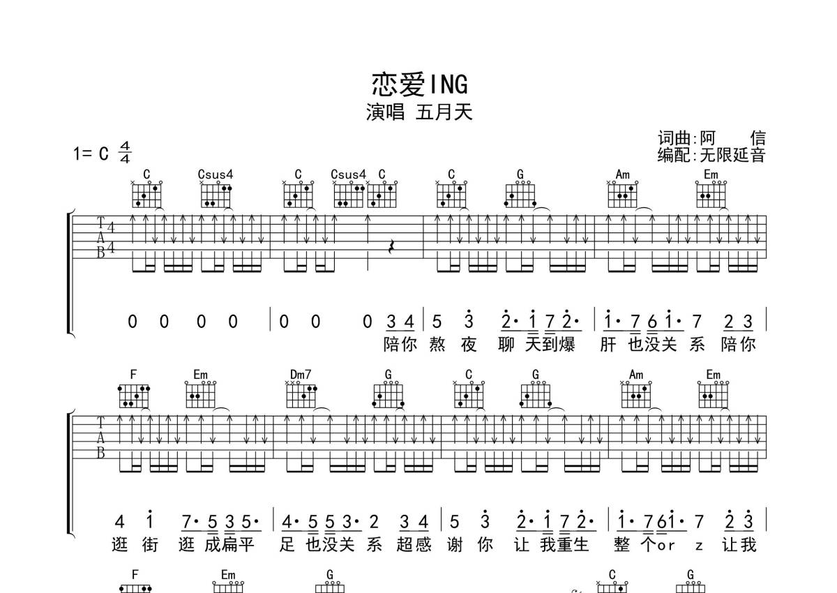 五月天《恋爱ING》吉他谱 - C调弹唱六线谱