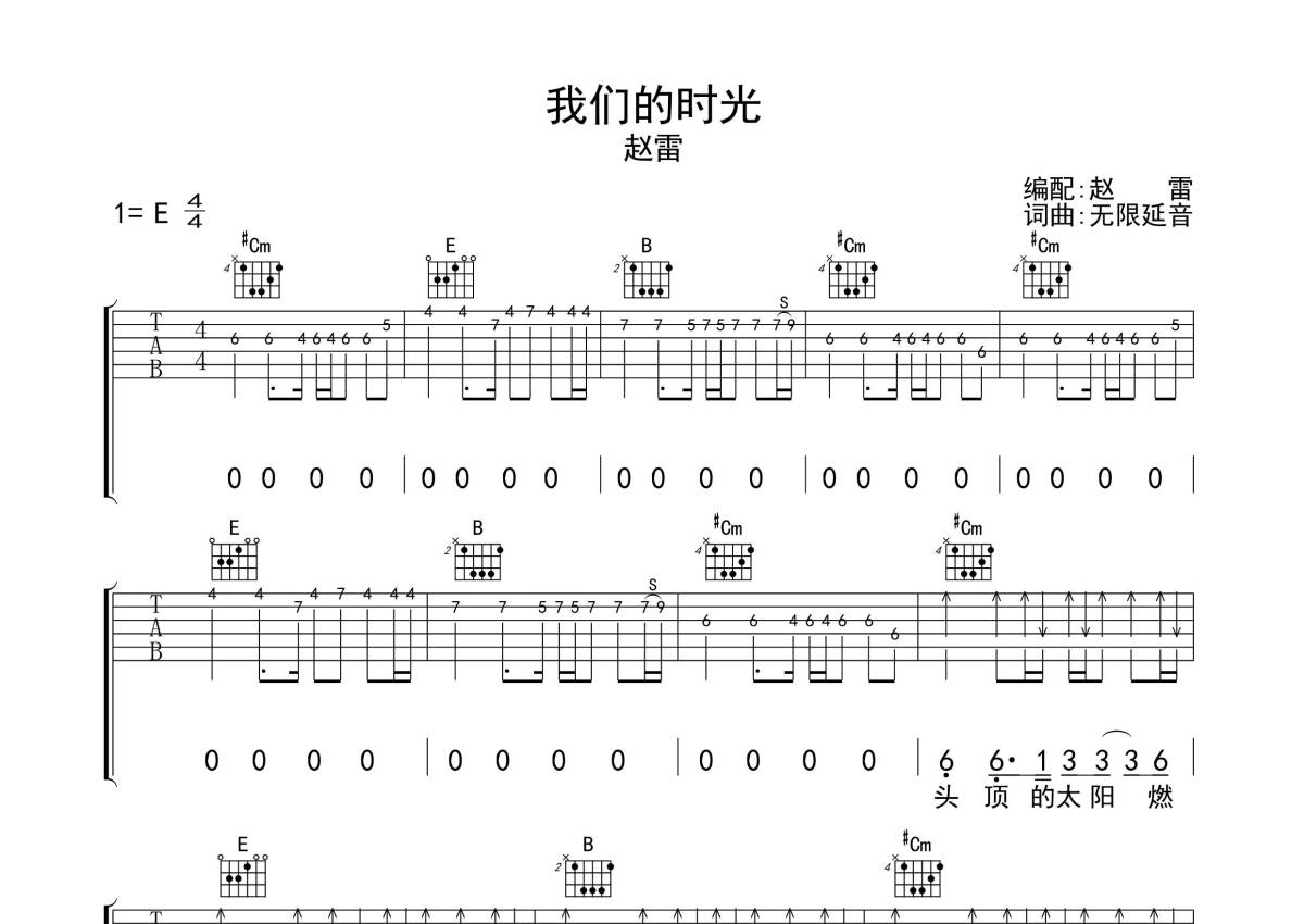 赵雷《我们的时光》吉他谱 - E调弹唱六线谱